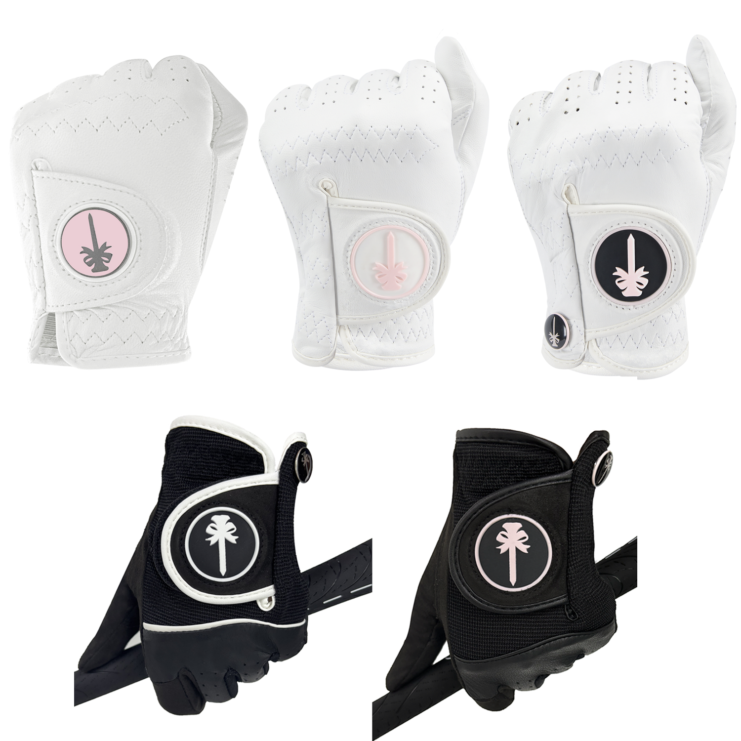 PINKTEE Women’s Leather Golf Glove with Removable Golf Ball Marker Full Finger Fit Size S M L XL
